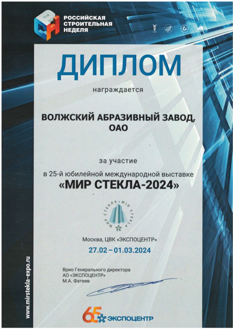 «Волжский абразивный завод» постоянный участник и лауреат разных номинаций конкурса «100 лучших товаров России».